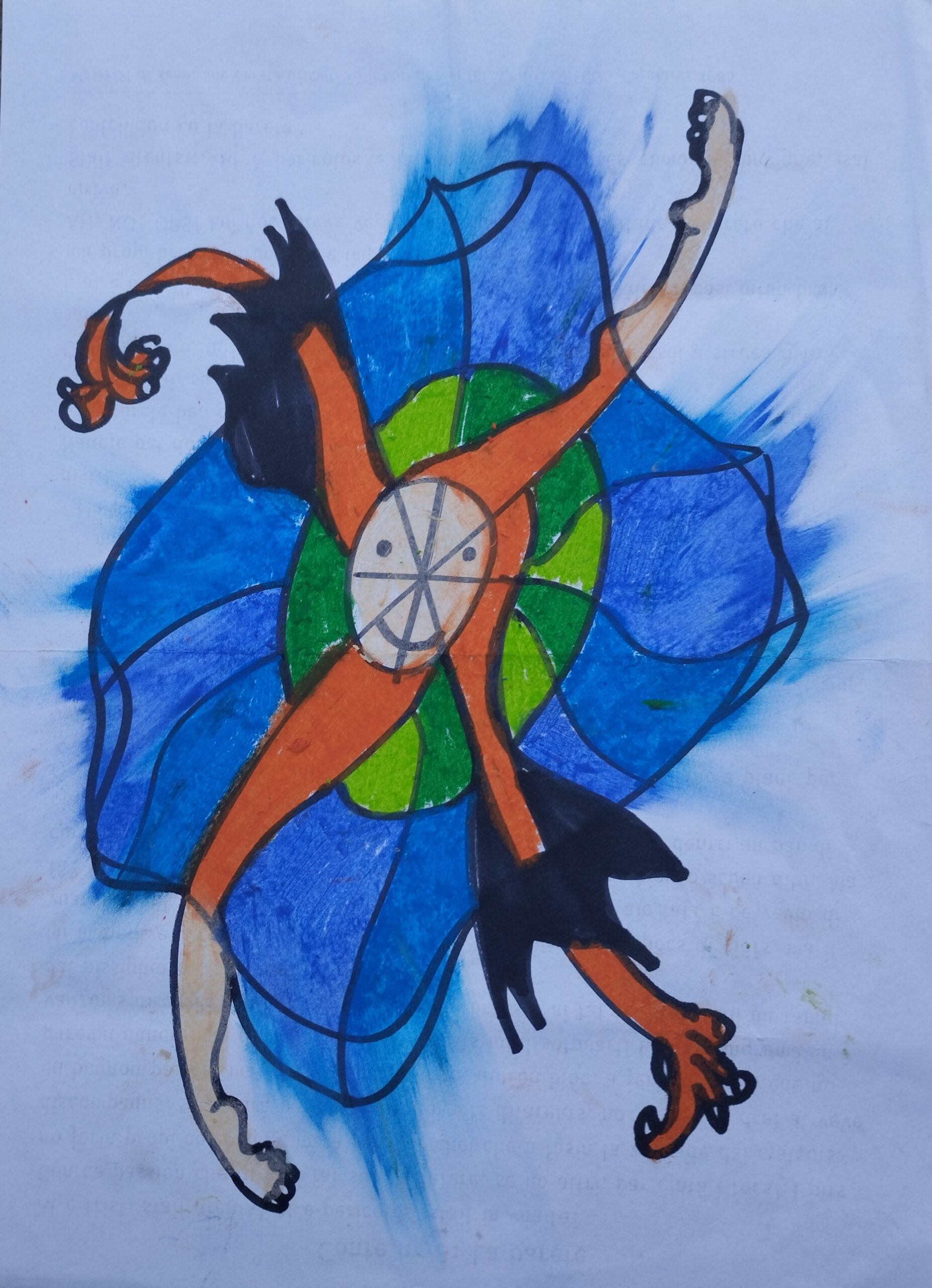 Traduzion: Mi regalasti/ una piega/ sulle lenzuola e una/ che dal naso cerca/ la bocca./ E il ragazzetto/ giocava nel cortile/ della luna;/ E la piccolina/ zampettava appresso/ alle lucciole/ senza catturarne alcuna./ E tu qui, ragazza/ con la gonna di ragioni/ con gli incubi/ vestiti a festa/ a ballare sul petto fiorito.